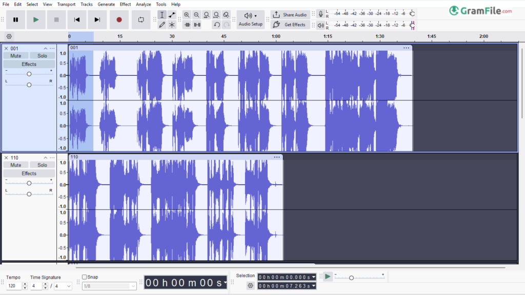 - Edit tracks (cut, copy, paste, adjust speed/pitch).