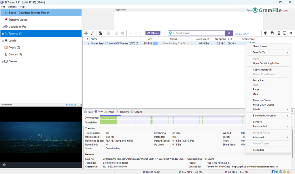 The free version shows ads, and lacks some modern features like built-in streaming. But for pure, straightforward torrenting from the company that invented the protocol, BitTorrent still gets the job done.
