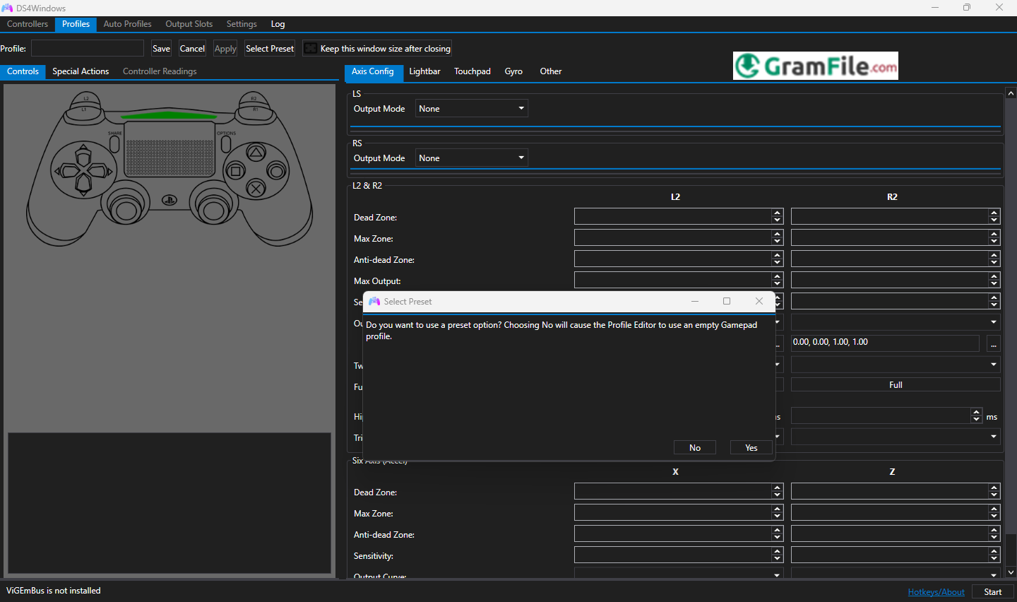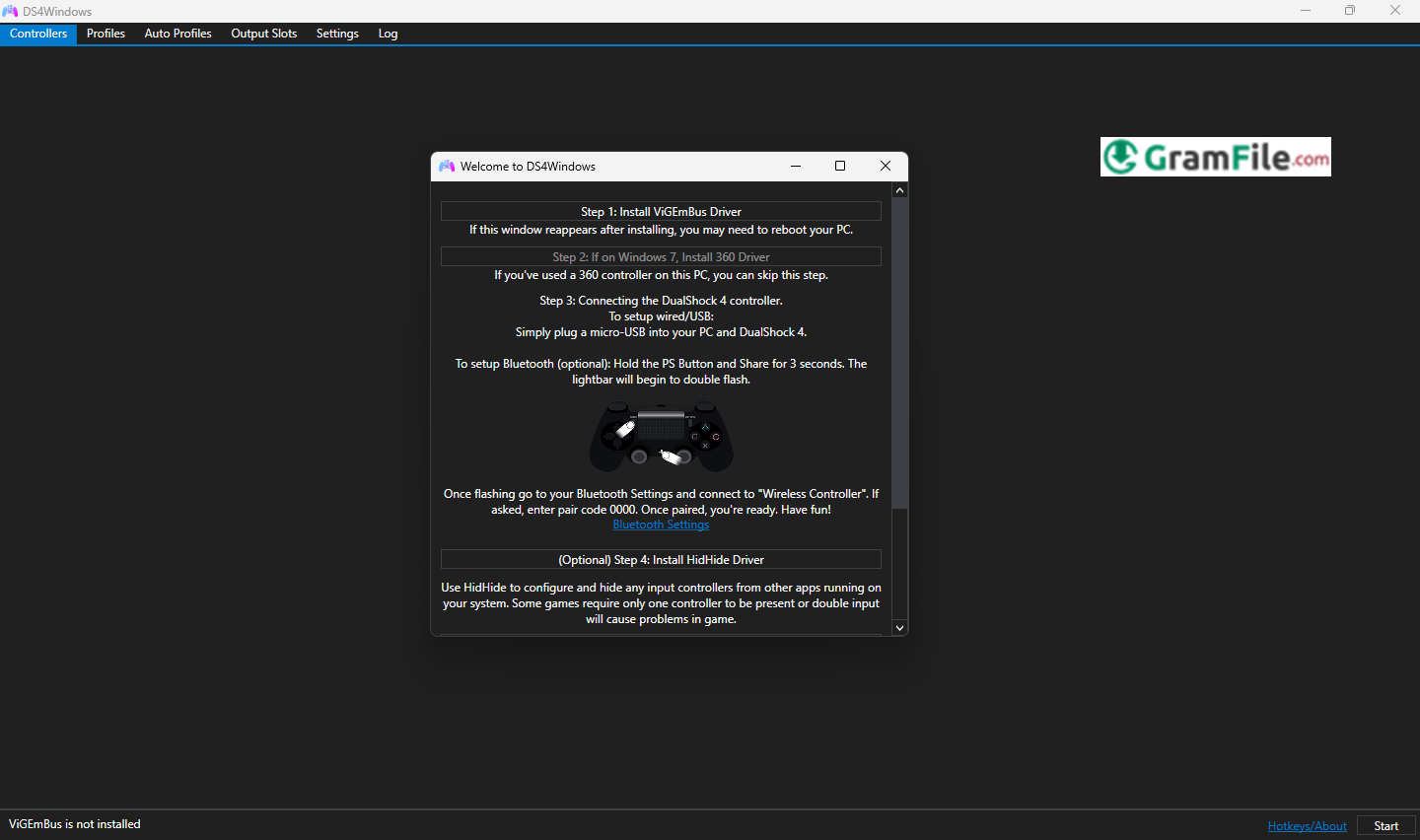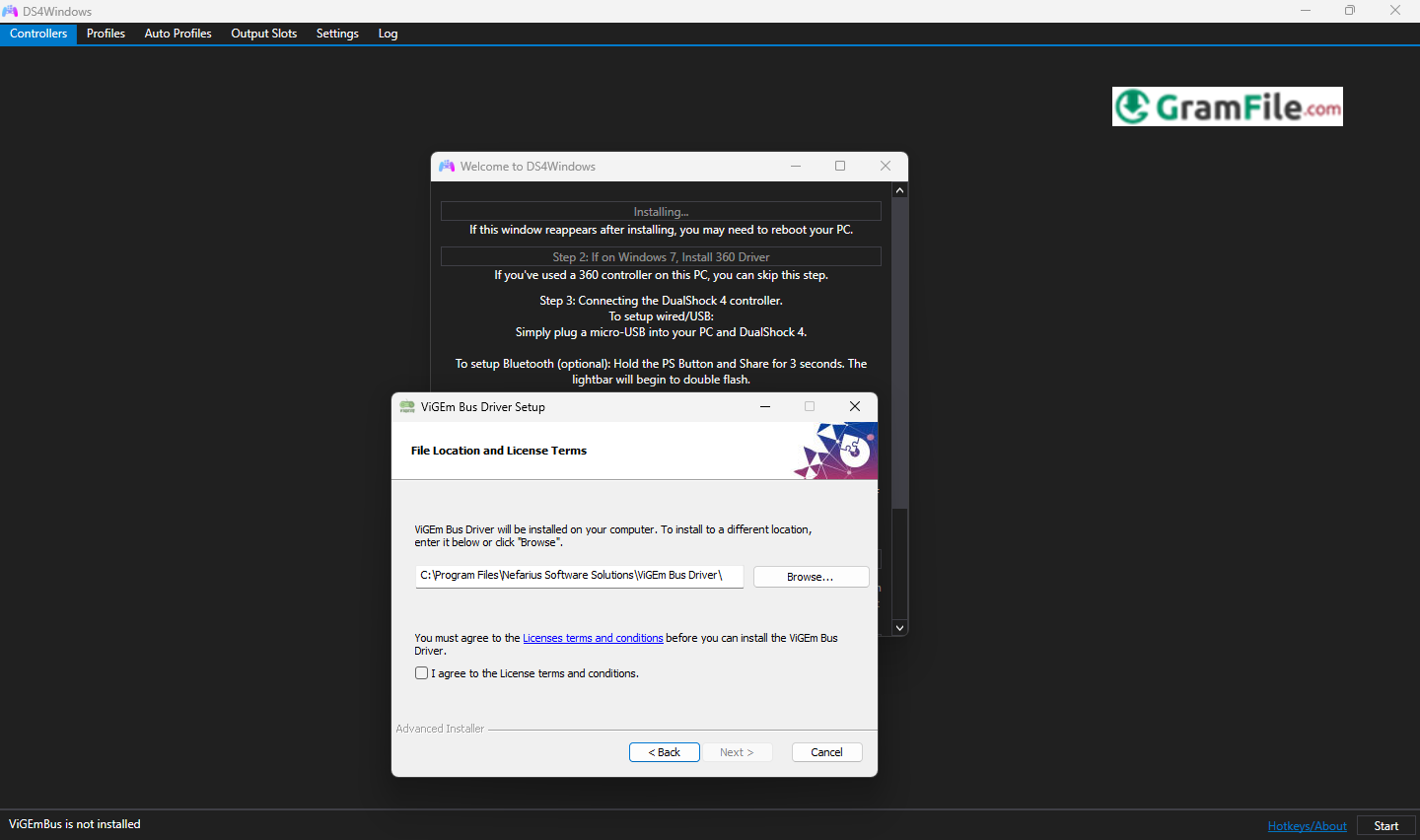 5. When prompted, click “Install ViGEmBus driver” (this creates the virtual controller).